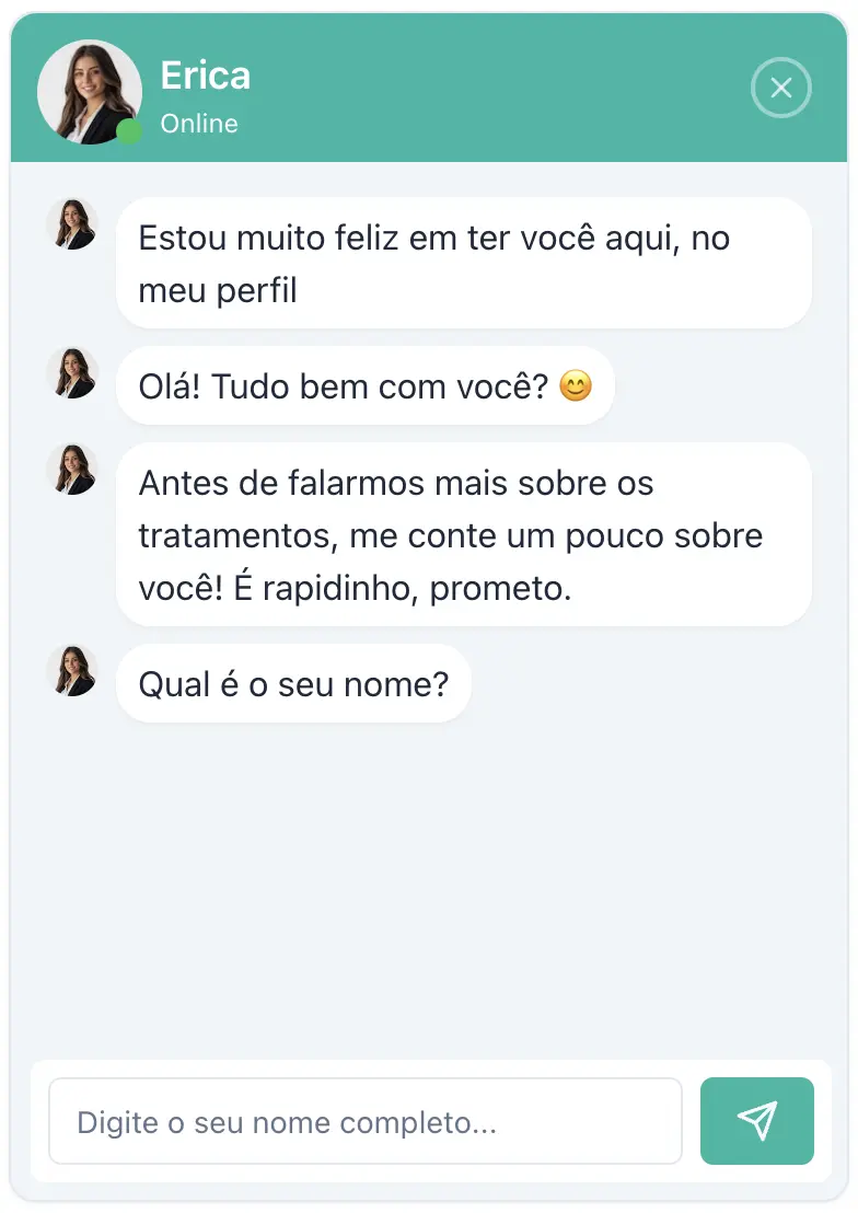 Uma chat inteligente separa os curiosos e pacientes interessados. A captação de pacientes agora é mais eficiente do que nunca.